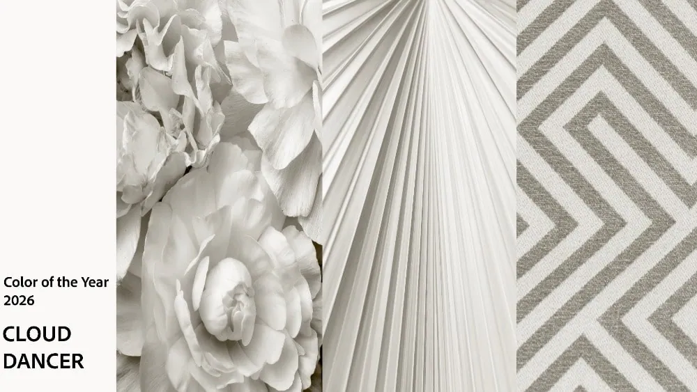 Pantonen vuoden 2026 väriksi valittiin harmaaseen taittava valkoinen sävy, Cloud Dancer.